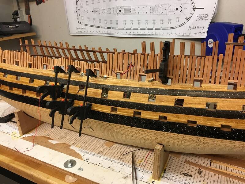 Als laatste heb ik een mal gemaakt voor de bediening van de poortkleppen. De eerste sets zijn nu gereed. Ik ga nu weer verder met de inrichting van het Lower Deck en daarbij wordt ook de dekconstructie van het "Middle Deck' meegenomen. De kanonnen en de luiken worden dan één voor één aangebracht en tussendoor kan ik dan weer een set nieuwe takels, enz., maken