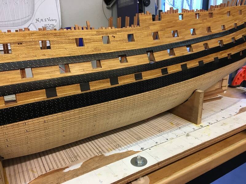Nu hebben er niet altijd koperen platen op de romp van Vic gezeten en kun je dat als argument gebruiken. Dit doe ik niet, het ziet er gewoon niet goed uit. Wel als de romp geheel voorzien zou zijn van koperen platen, maar dan kan nu niet.