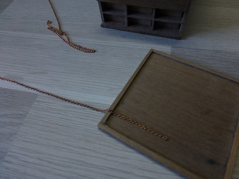 We zijn toch maar zelf verder aan de slag gegaan om spullen en maten te verzamelen voor de kist. Na lang speuren op internet vond ik een leverancier die kleine schanieren en slotjes op voorraad heeft. Het schanier is uitgeklapt 4 x 4 mm en het slotje is 5 x 4 mm. Sterker nog... ze werken nog echt ook.