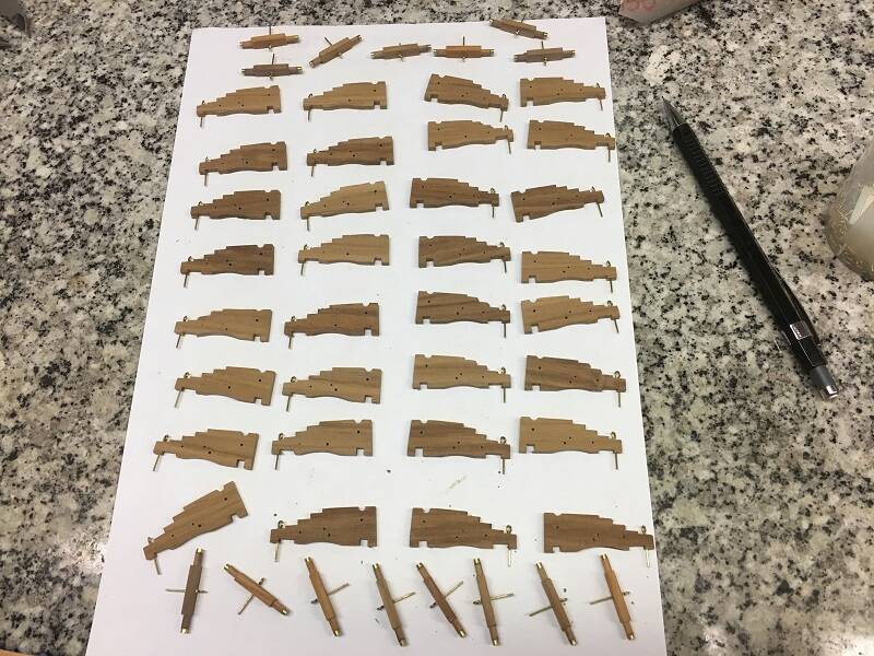 De laatste periode heb ik mij volledig even op de productie van de 24 Pound Guns gericht. Als eerste heb ik de onderdelen van de rolpaarden af gemaakt en deze in elkaar gezet. Net als bij de 32 Pound Guns heb ik extra onderdelen gemaakt zodat ik in ieder geval een reserve rolpaard kan maken.