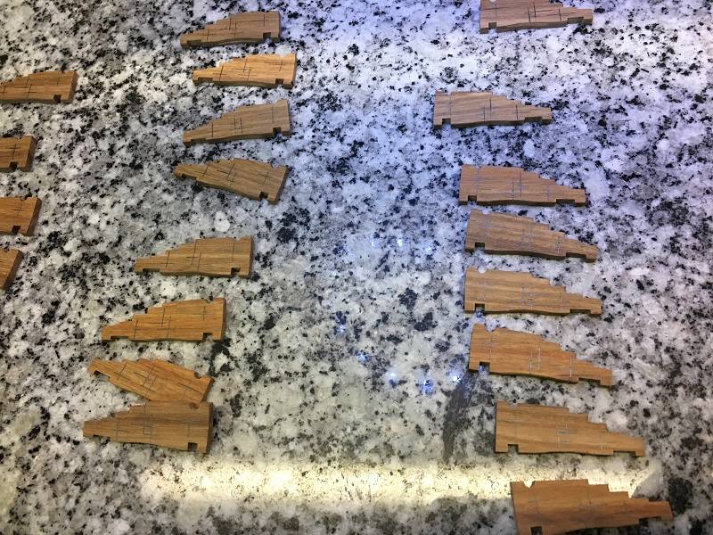Op het Lower Deck komen 15 stuks 32 pound guns te staan. De rolpaarden voor de 32 en de 24 pound guns zijn hetzelfde, dus ik heb een paar mallen gemaakt, zodat ik meerdere onderdelen tegelijk kan verwerken.