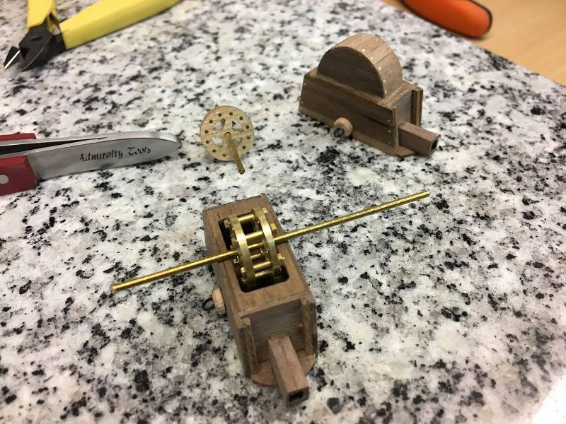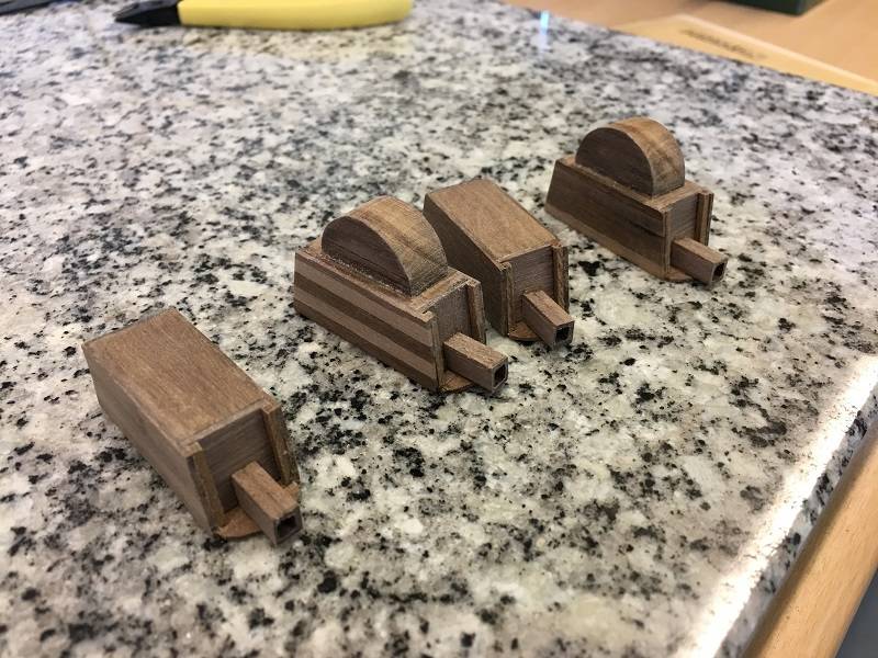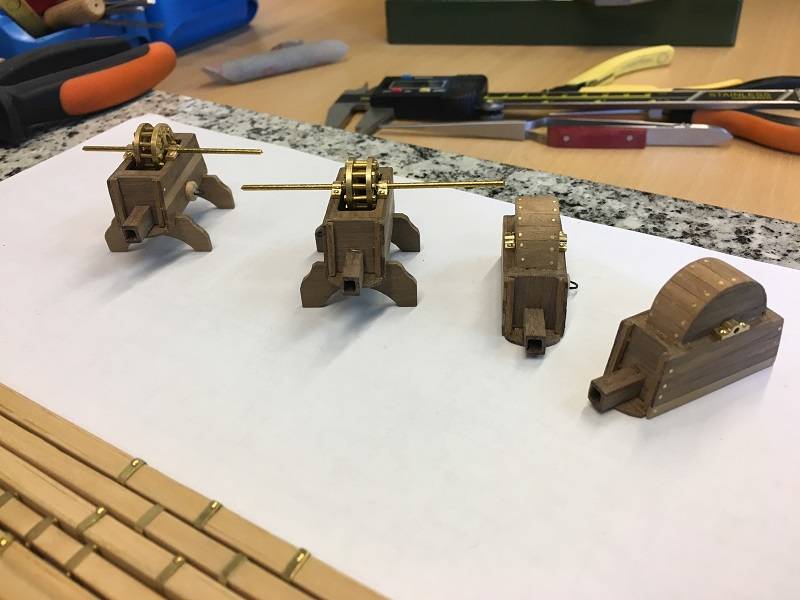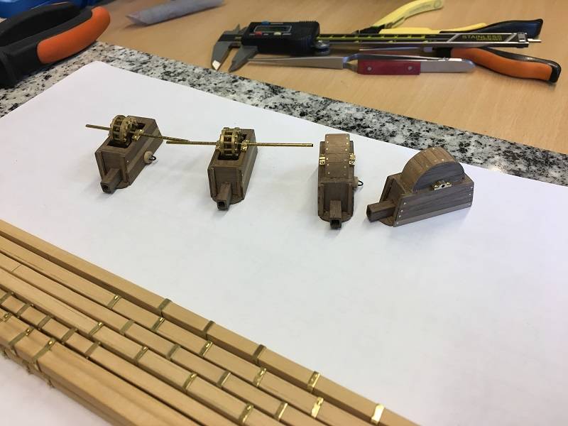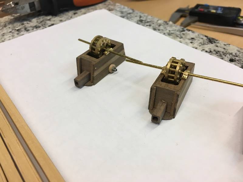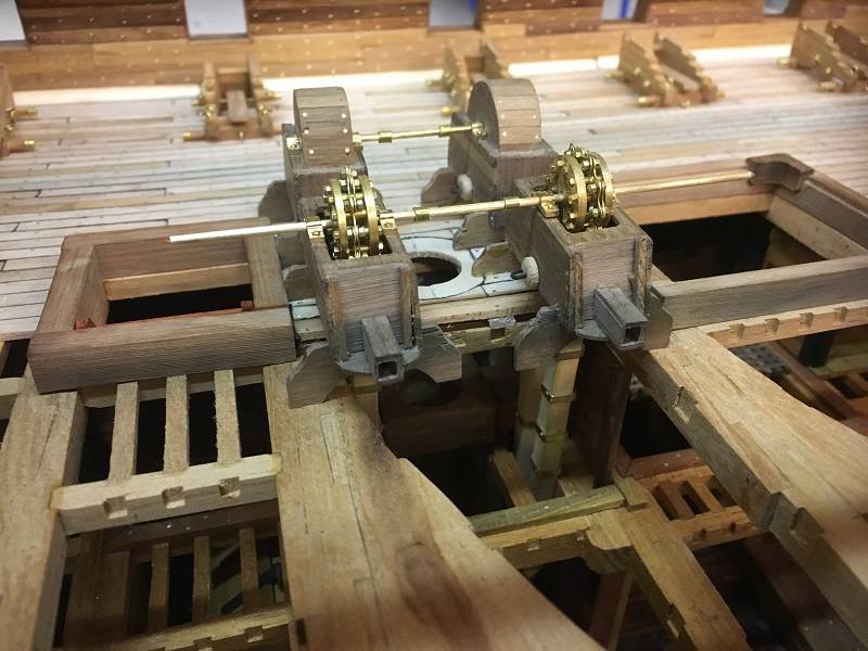 De assen worden later verlengd met de hendels. Ik neem dat mee in de blog van het Lower Deck. In deze blog komt dan nog alleen het plaatsen van de Elm Tree pumps.