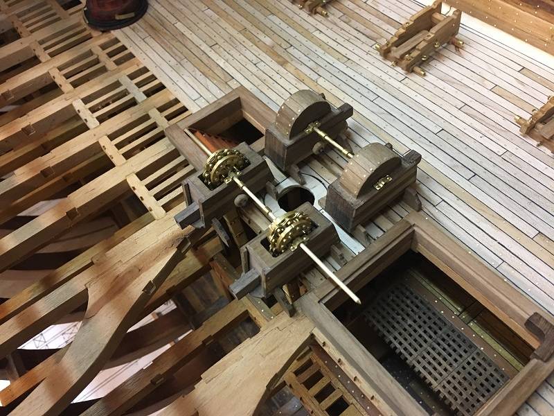 In het midden van het Lower Deck komen 4 Chainpumps te staan. Hiermee wordt het water uit het ruim gepompt. Eén pomp heeft een capaciteit van 120 ton water per uur. De pompen kunnen alleen werken of per paar gekoppeld worden. Aan weerzijden van de pompen zaten de hendels en aan iedere hendel kunnen zo'n 30 man staan om deze te bedienen. Om alle 4 de pompen tegelijkertijd te laten werken, konden 120 man ingezet worden.