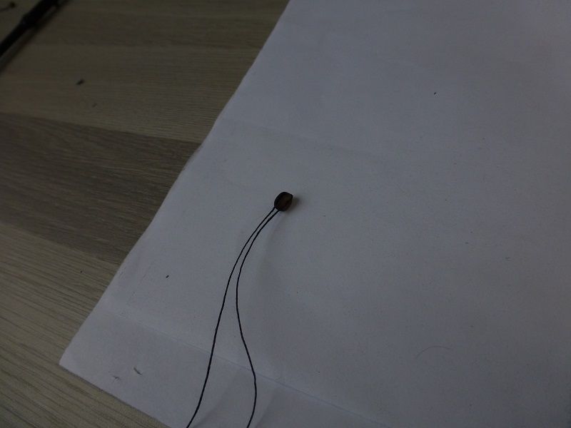 Ik span het touw eerst om het blok heen en zet alles even vast in een pincet. Daarna lijm ik het touw vast aan het blok door aan beide zijden er een flinke druppel houtlijm op te smeren. Na het drogen zie je niets meer van de lijm en zit het touw vast aan het blok. Ik kan daarna de windsels en knopen een stuk eenvoudiger en sneller aanbrengen.