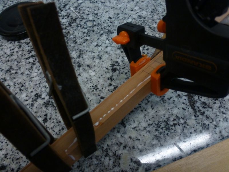 Gisteren alle blokken voor de kiel voorzien van een zandstrook en de kiel in elkaar gelijmd. Dan kon hij mooi een nachtje drogen en uitharden.
