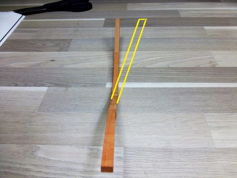 Na een aantal mislukte pogingen heb ik nu eindelijk de juiste slag te pakken en is het rechtse deel van het spant in elkaar gelijmd. Ik heb hem even naast de foute spant op de foto gezet, zodat de draai en andere verschillen zichtbaar zijn.