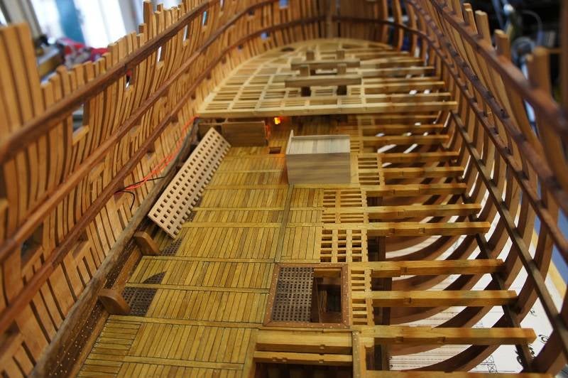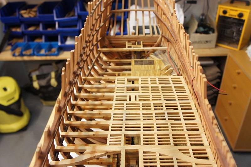 The Cable Tier en The Sailroom zijn gereed, alle staanders en deuren zijn geplaatst. De dekbalk voor het pomphuis is een samengesteld dekbalk van dekbalk 73 en 76. Dit geeft wat extra werk, maar is wel weer eens een afwisseling werkzaamheden.