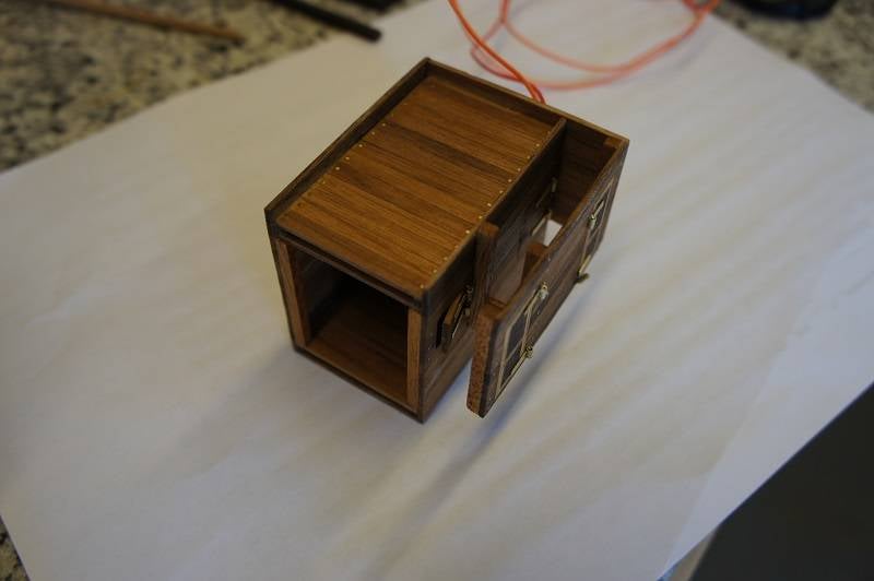 De Boatswain Store en Cabin zijn gereed. In de tussentijd weer een nieuwe lantaarn gemaakt en deze staat in de vitrine, netjes achter een luik. Ik ben vergeten een foto van de vitrine te maken. Ik heb een paar foto's gemaakt van de vitrine toen ik de lantaarn aan het testen was.