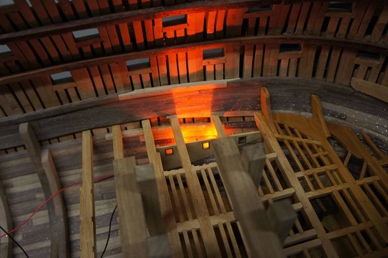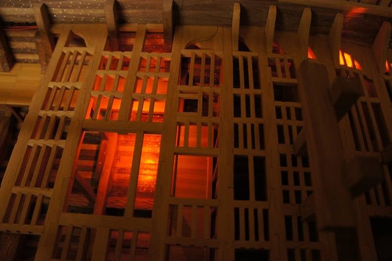 Sinds deze week ben ik 3 jaar bezig met dit project, het verveelt nog steeds niet. Afgelopen week heb ik weer een deelproject kunnen afsluiten. De inrichting van het ruim is gereed. In de 'Light Space zijn 2 lichtbronnen aangebracht en alle deckbalken zijn geplaatst. Het ventilatiekanaal stopt nu achter de laatste deckbalk, deze wordt later verlengd naar het Orlop Deck.
