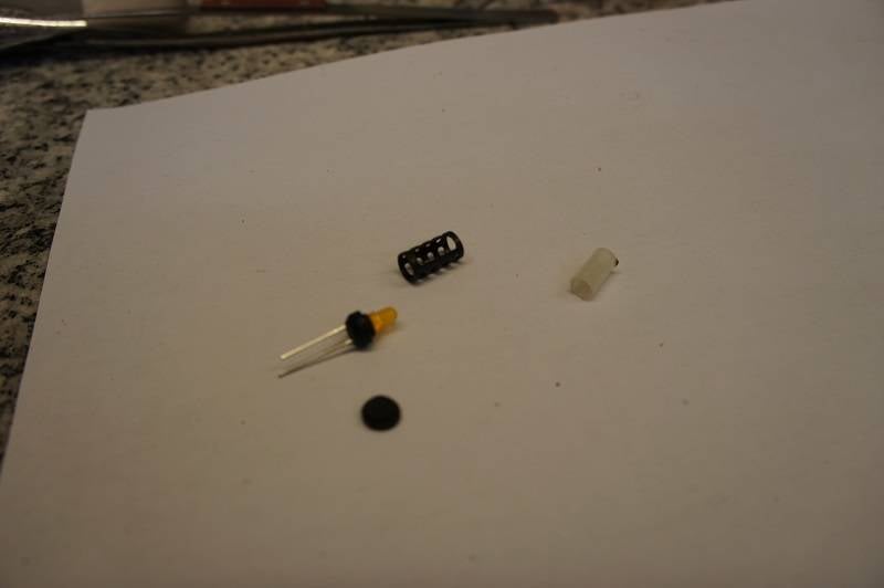 De afmetingen van een lantaarn op de echte Vic zijn 21" hoog en 7,5" in diameter. Mijn doel was om deze afmetingen in schaal 1:48 zoveel mogelijk te benaderen met de ledlampen, enz. Mijn lantaarns bestaan uit 5 onderdelen. De bovenzijde, waar de ledlamp aan bevestigd wordt, is gemaakt van ebbenhout, net als de onderplaat. Het gedeelte tussen de boven- en onderzijde bestaat uit 2 onderdelen, een styrene witte buis en een messing raamwerk.