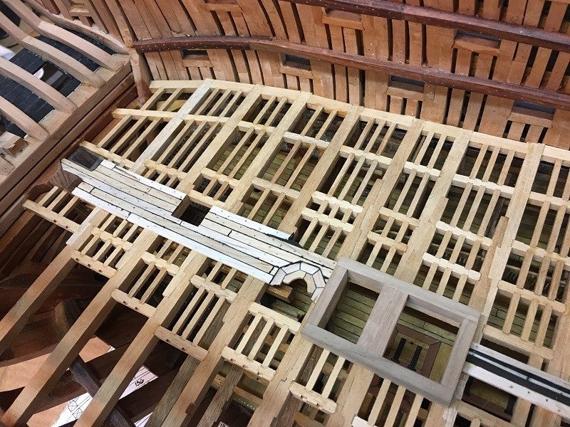 Tussen alle projecten door was er ook nog even tijd om wat onderdelen aan te brengen op het Lower Deck. Zo zijn alle balken waar de kogels op liggen aangebracht en ook de ogen waar de 'Training Tackles van de rolpaarden aan het dek vastzaten zijn geplaatst. In het Nederlands worden de 'Training Tackle' ook wel een 'Uithaaltalie' genoemd'