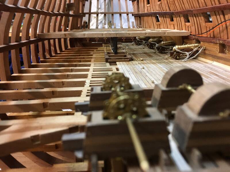 Het inrichten van het Lower Deck is sinds vorige week weer echt opgestart. Intussen zijn 10 van de 15 kanonnen geplaatst en is er weer een flink stuk van de Middle Deck constructie aangelegd inclusief de bediening van de luiken. Ik heb hieronder een flink aantal foto's geplaatst. Geniet er van.