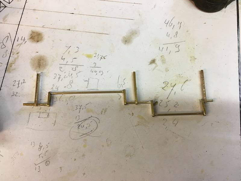 Voordat de rest van de dekconstructie "Middle Deck' aangebracht kon worden moet eerst de bediening van de "Chain Pumps" aangebracht worden. Ik had al een aantal onderdelen eerder gemaakt, maar nu kon ik eindelijk de lengte van de stangen goed bepalen. Daarna alles vast gesoldeerd en de bediening aan de boegzijde van de "Chain Pumps", na eerst even te poetsen, aangebracht. De bediening aan de achterzijde wordt de volgende keer aangebracht