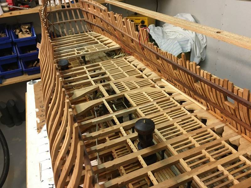 De rest van de dekconstructie is inmiddels ook aangebracht, alles is weer geschuurd en schoongemaakt. Het laatste deel van het "Lower Deck" is inmiddels ook in de olie gezet. Ik werk er nu naar toe om rond het eind van dit jaar gereed te zijn met het "Lower Deck".
